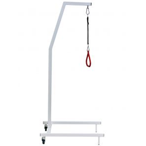 Дуга и стойка, устанавливаемые на кровать гораздо удобнее напольных аналогов и в отличие от них никогда не падают.